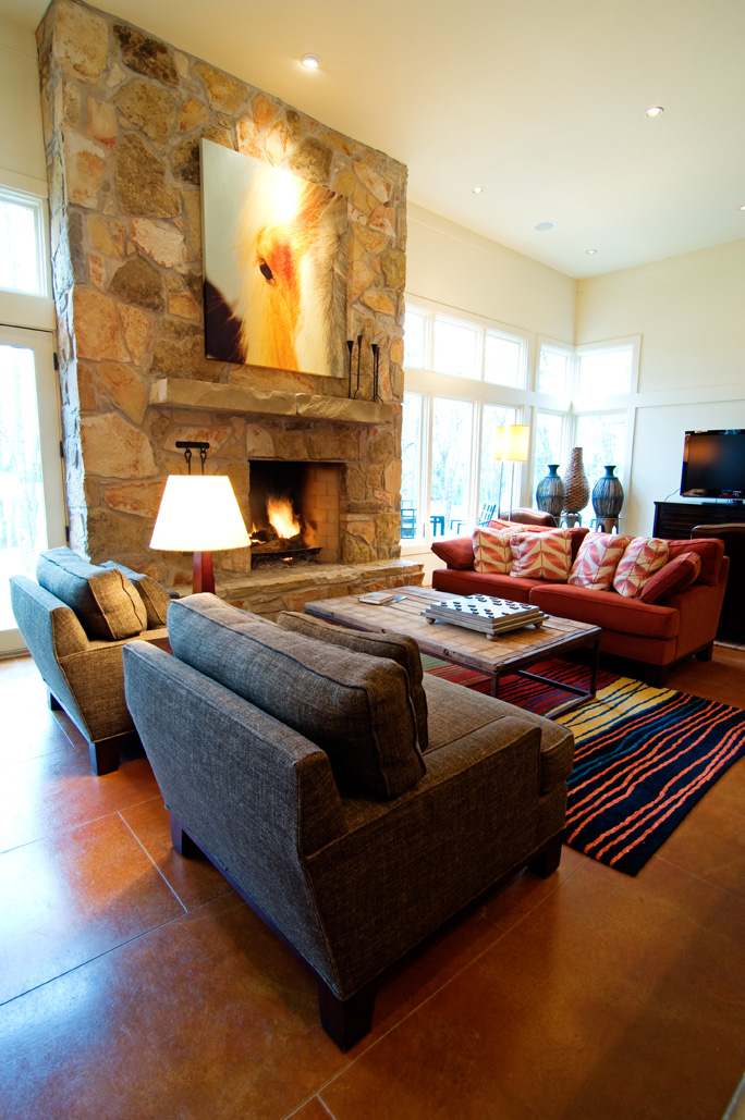 Guests can relax in front of the great room’s large stone fireplace or study the wildlife just outside the wall of windows opposite the kitchen. Just off the great room is a screened-in porch that is heated, allowing guests to use the area year round. Another place to read, relax or bird watch is a large deck on the south side of the great room that overlooks the private lake.